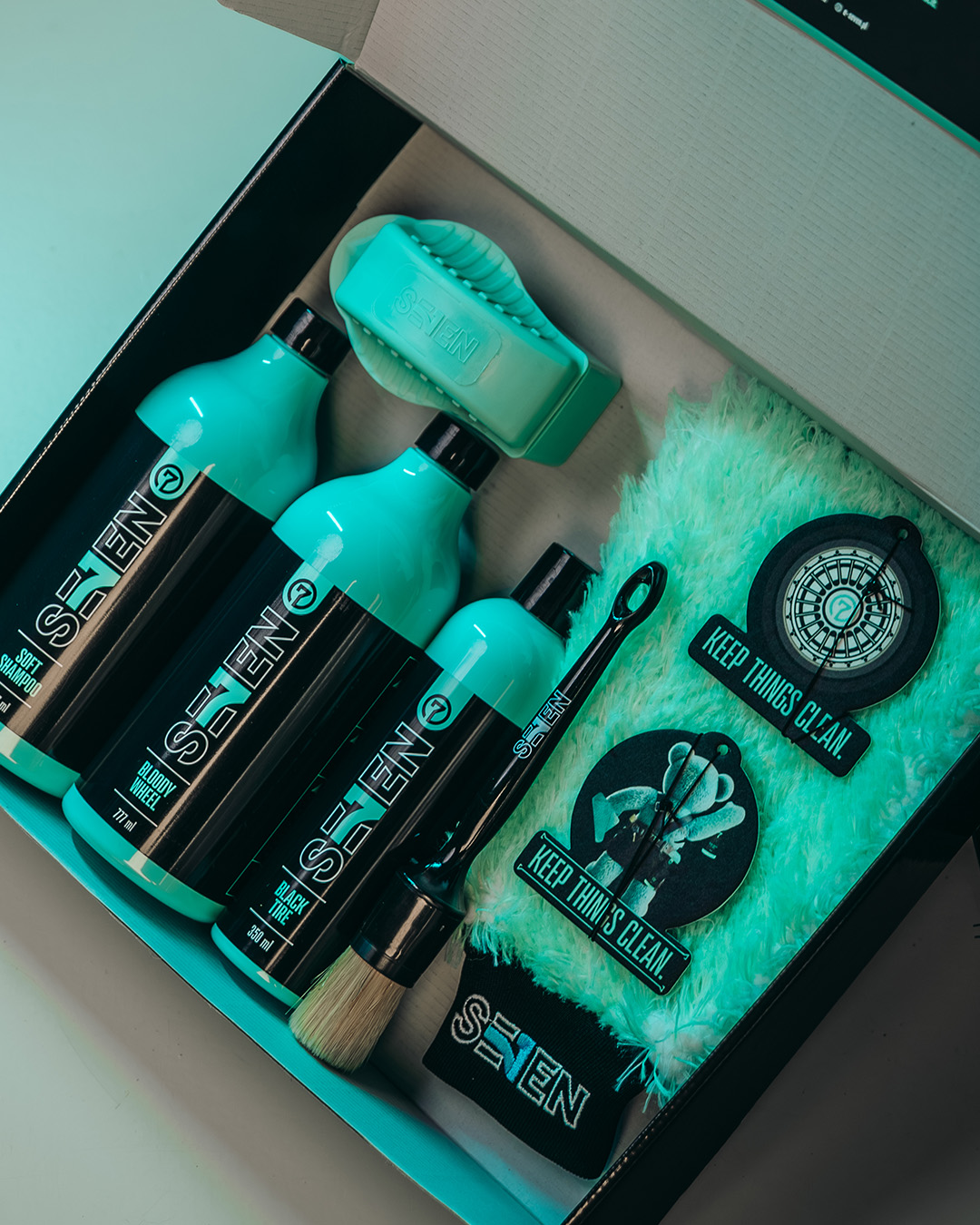 SEVEN Gift Box Wash to rozbudowany zestaw do mycia i pielęgnacji zewnętrznych elementów samochodu.